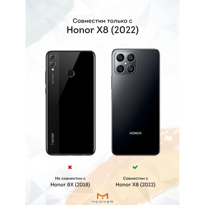 Чехол для смартфона Honor X8 - неотъемлемый аксессуар каждого современного человека. Премиальные износостойкие краски и лаки, качественные материалы изделия, японское оборудование и контроль качества производства - это то, что позволяет нам выгодно выделяться среди конкурентов и производить не только красивые, но тактильно приятные чехлы для Хонор Х8, которые долгое время не теряют первоначального вида.