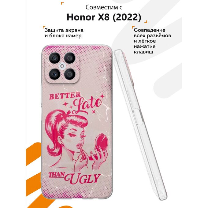 Чехол для смартфона Honor X8 - неотъемлемый аксессуар каждого современного человека. Премиальные износостойкие краски и лаки, качественные материалы изделия, японское оборудование и контроль качества производства - это то, что позволяет нам выгодно выделяться среди конкурентов и производить не только красивые, но тактильно приятные чехлы для Хонор Х8, которые долгое время не теряют первоначального вида.