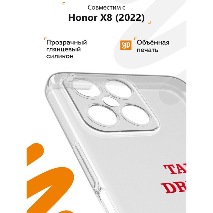 Чехол для смартфона Honor X8 - неотъемлемый аксессуар каждого современного человека. Премиальные износостойкие краски и лаки, качественные материалы изделия, японское оборудование и контроль качества производства - это то, что позволяет нам выгодно выделяться среди конкурентов и производить не только красивые, но тактильно приятные чехлы для Хонор Х8, которые долгое время не теряют первоначального вида.