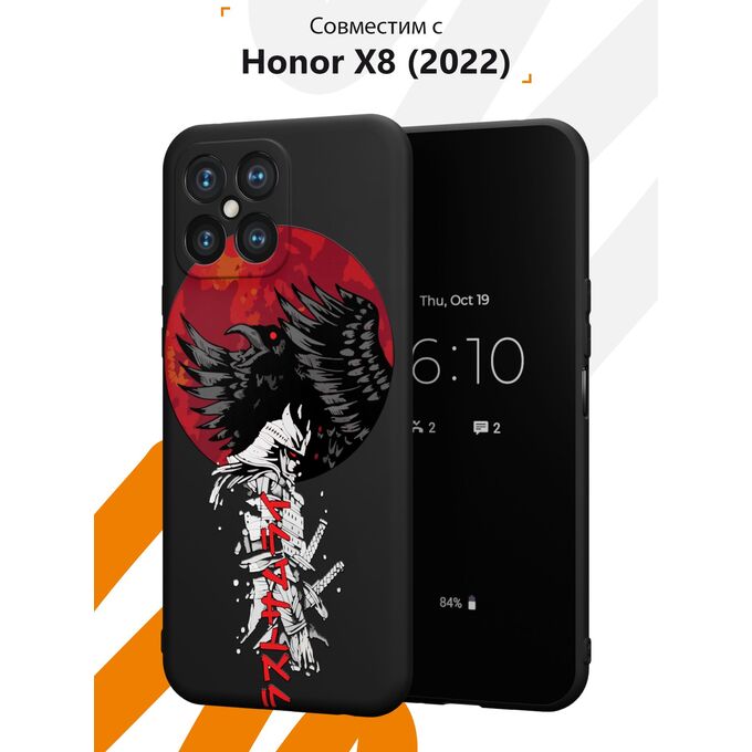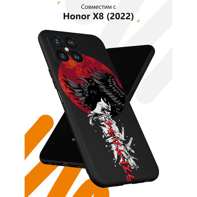 Силиконовый чехол Mcover для Honor X8 (Хонор Х8), Ворон и самурай