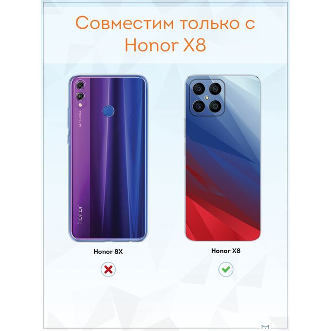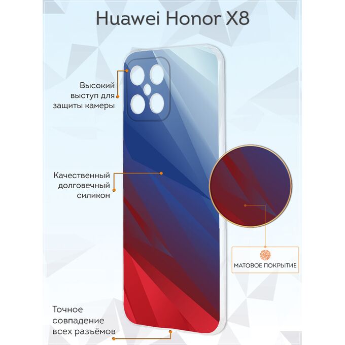 Чехол для смартфона Honor X8 - неотъемлемый аксессуар каждого современного человека. Премиальные износостойкие краски и лаки, качественные материалы изделия, японское оборудование и контроль качества производства - это то, что позволяет нам выгодно выделяться среди конкурентов и производить не только красивые, но тактильно приятные чехлы для Хонор Х8, которые долгое время не теряют первоначального вида.