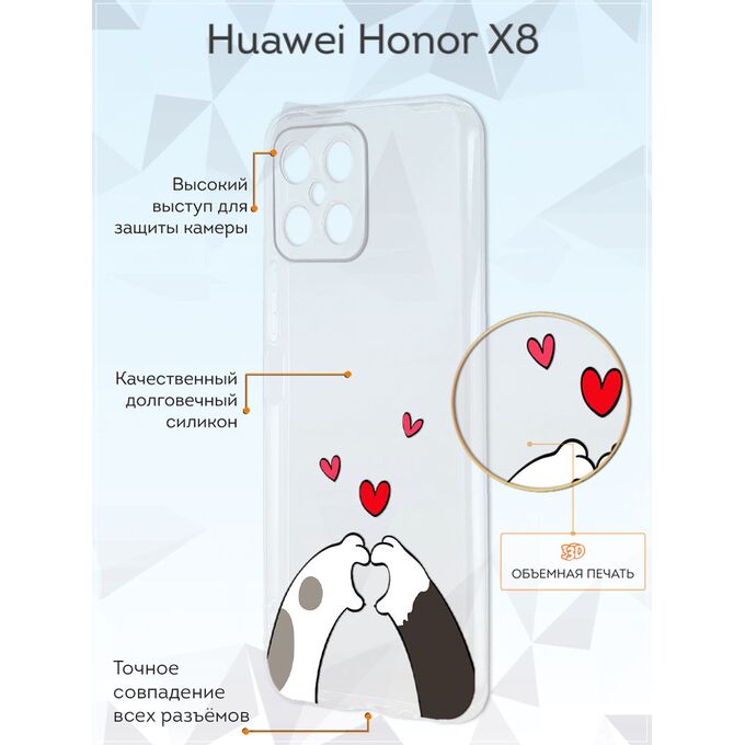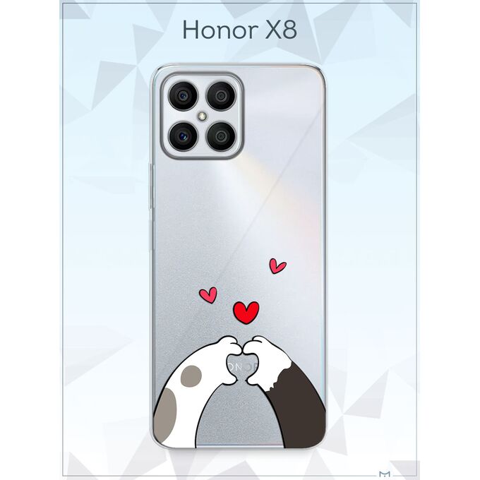 Силиконовый чехол Mcover для Honor X8 (Хонор Х8), Лапки с сердцем