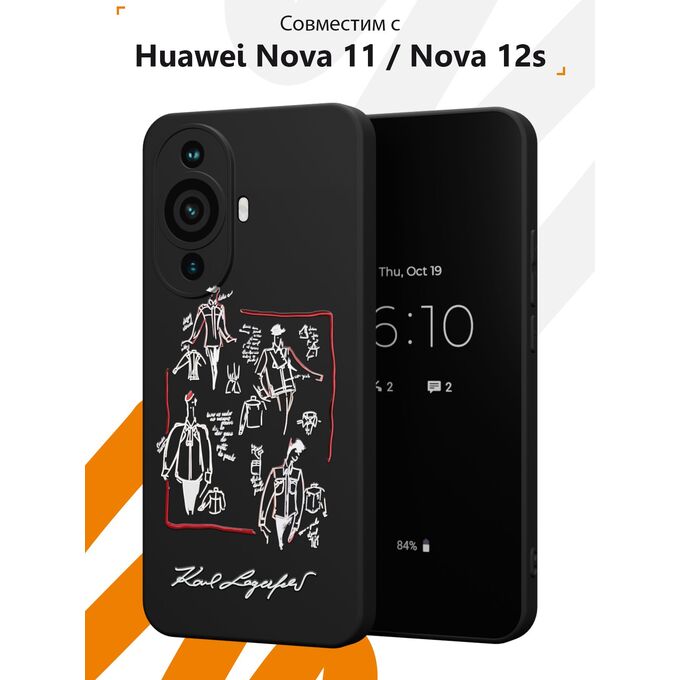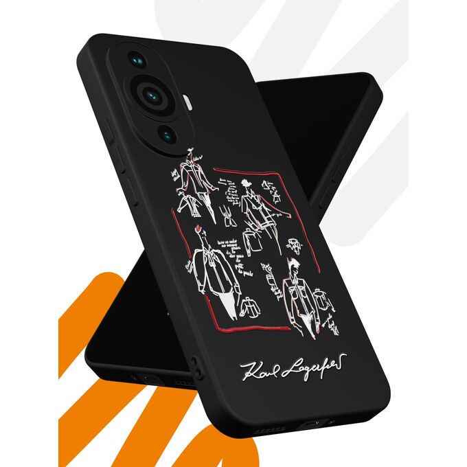 Силиконовый чехол Mcover для Huawei Nova 11 / Nova 12s (Хуавей Нова 11 и Нова 12с), с принтом Karl Lagerfeld, эскизы
