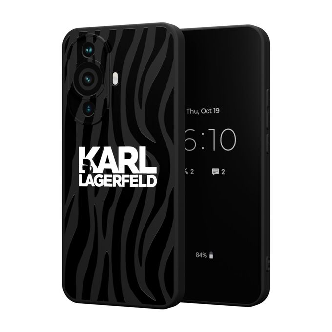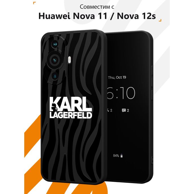 Силиконовый чехол Mcover для Huawei Nova 11 / Nova 12s (Хуавей Нова 11 и Нова 12с), с принтом Karl Lagerfeld на полосатом фоне
