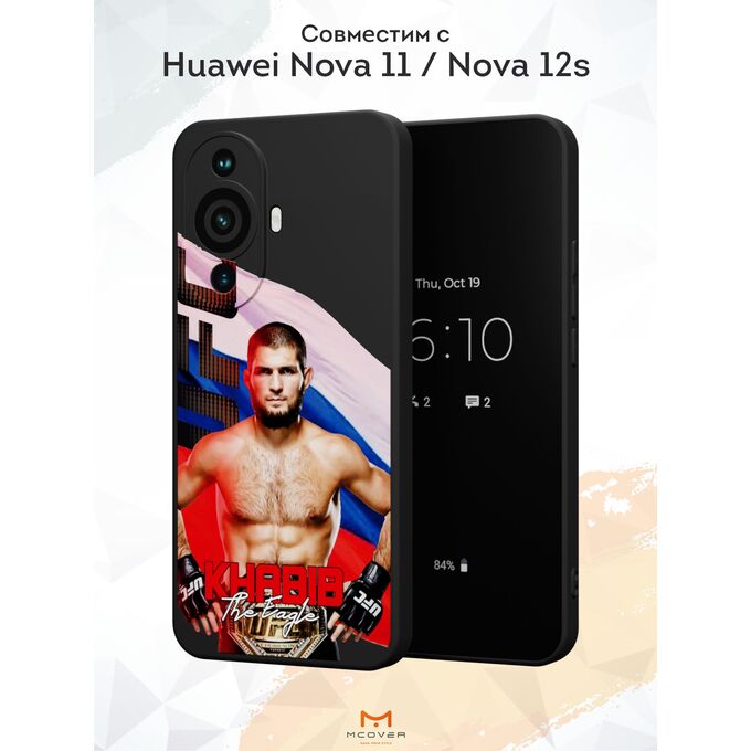 Силиконовый чехол Mcover для Huawei Nova 11 / Nova 12s (Хуавей Нова 11 и Нова 12с), с принтом Khabib