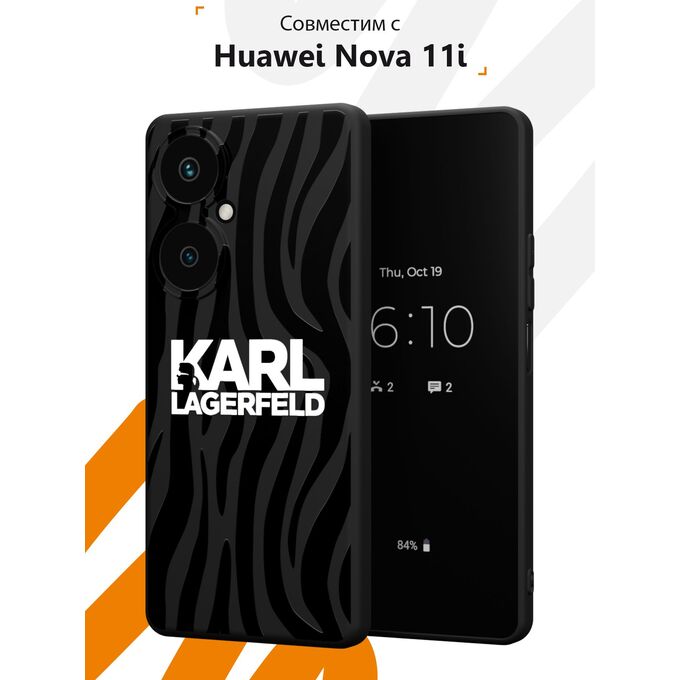Силиконовый чехол Mcover для Huawei Nova 11i (Хуавей Нова 11 Ай), с принтом Karl Lagerfeld на полосатом фоне