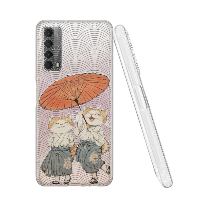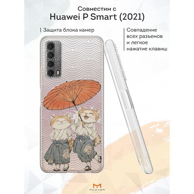 Силиконовый чехол Mcover для Huawei P smart 2021 (Хуавей П смарт 2021), Котята с зонтом