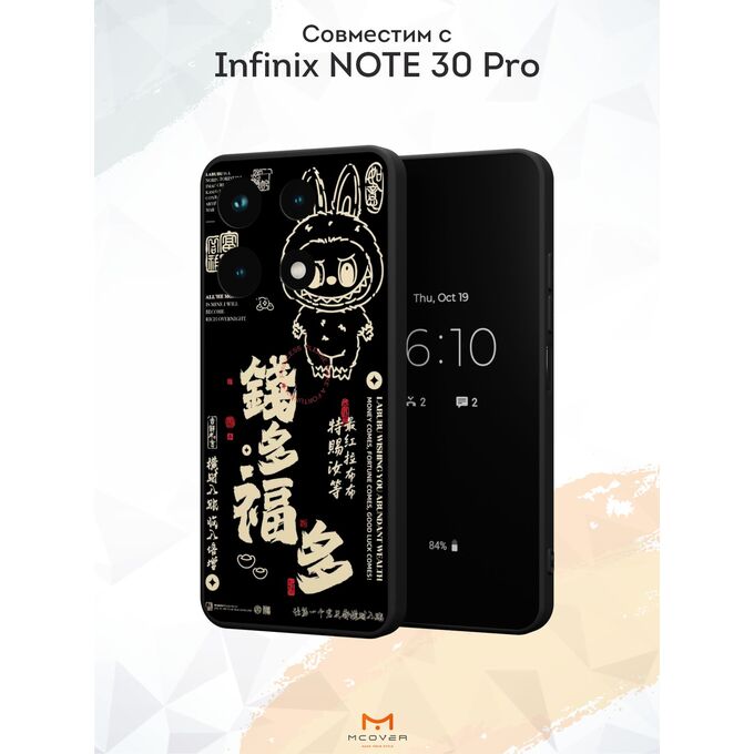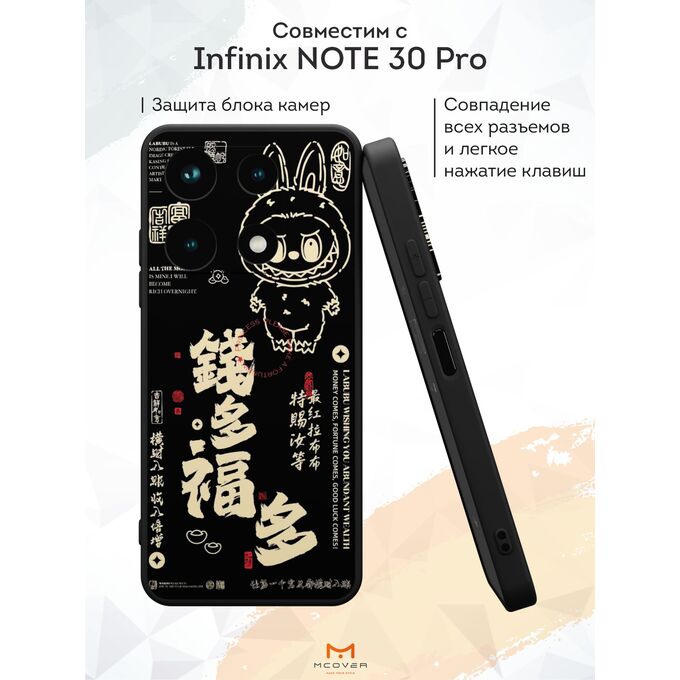 Силиконовый чехол Mcover для Infinix NOTE 30 Pro (Инфиникс Нот 30 Про), с принтом Иероглифы и лабубу