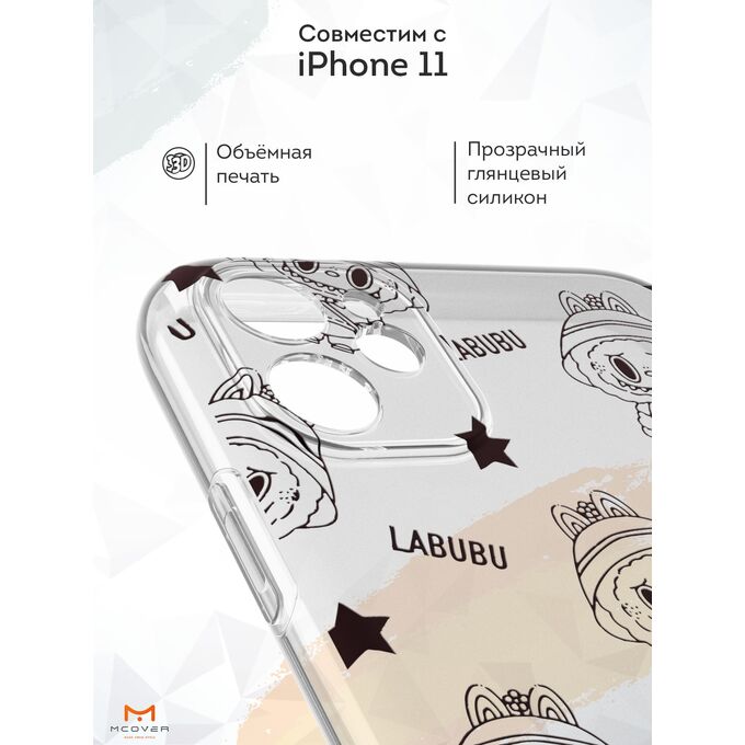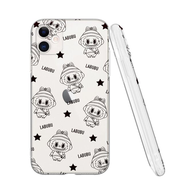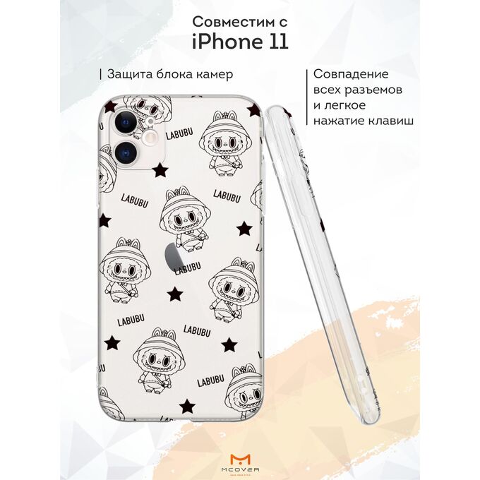 Силиконовый чехол Mcover для iPhone 11 (Айфон 11), с принтом ЧБ лабубу