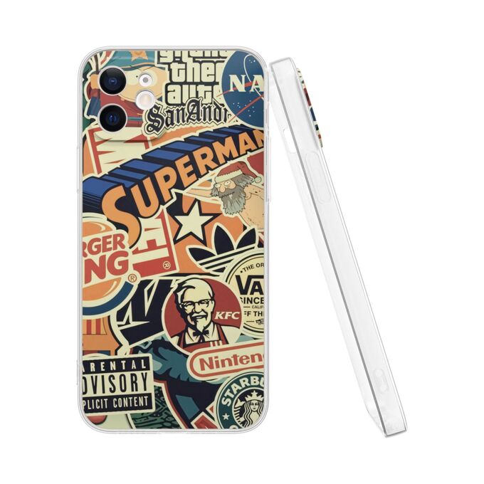 Силиконовый чехол Mcover для iPhone 12 (Айфон 12 ), с принтом Логотипы