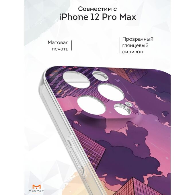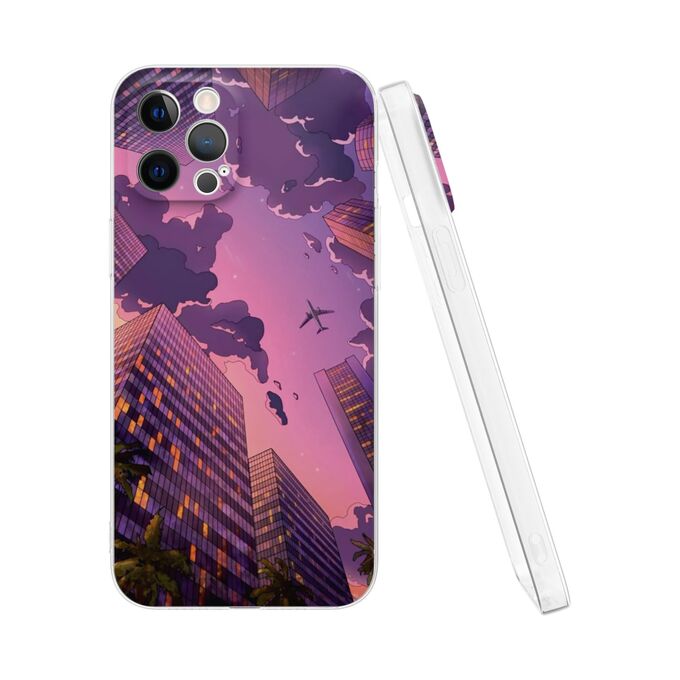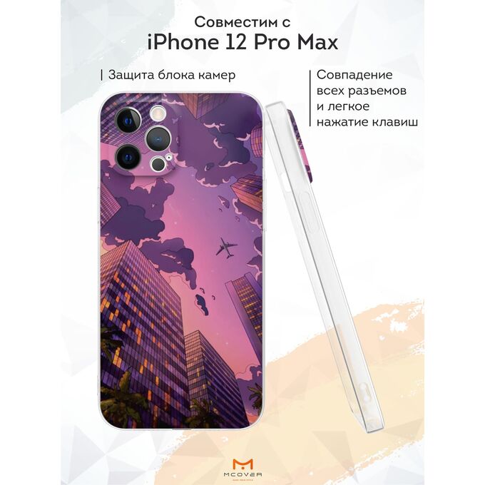 Силиконовый чехол Mcover для iPhone 12 Pro Max (Айфон 12 Про Макс), с принтом Небоскребы и самолет