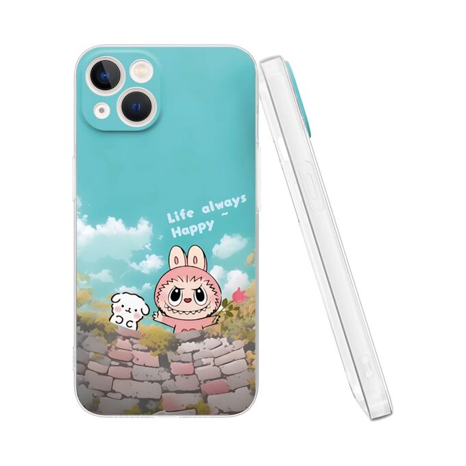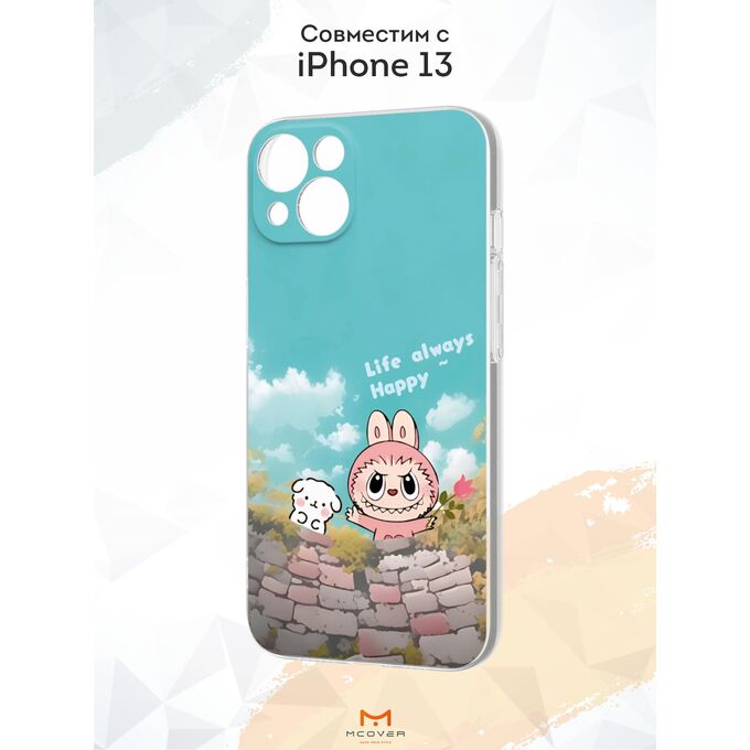 Силиконовый чехол Mcover для iPhone 13 (Айфон 13 ), с принтом Лабубу и щенок