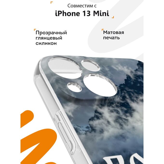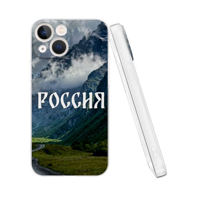 Силиконовый чехол Mcover для iPhone 13 mini (Айфон 13 мини), с принтом Россия и горы