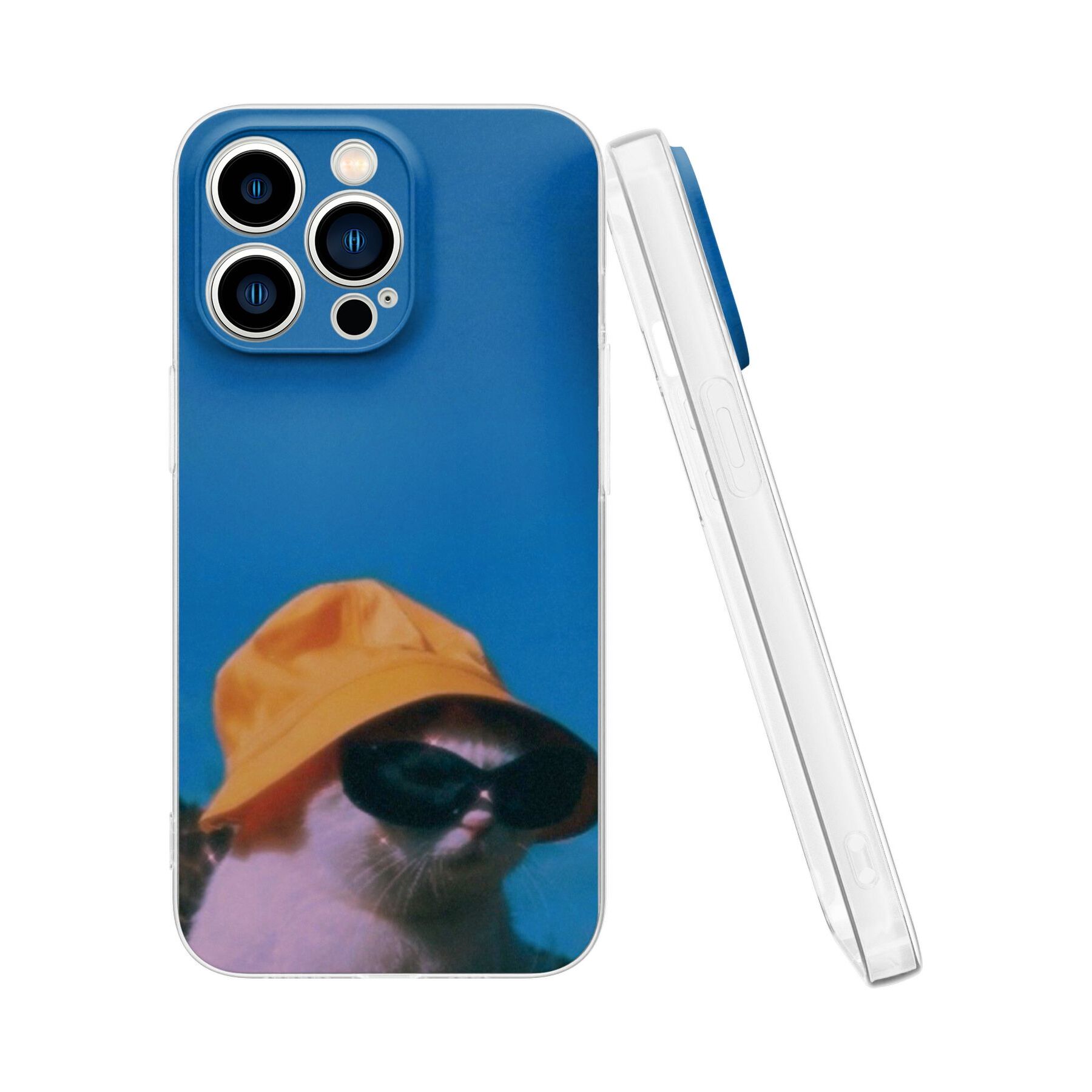 Силиконовый чехол Mcover для iPhone 13 Pro (Айфон 13 Про), Кот в очках и шляпе