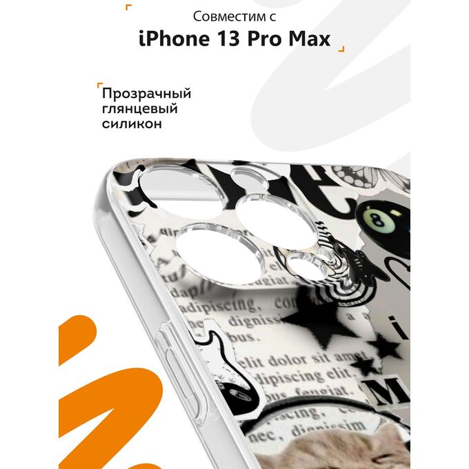 Силиконовый чехол Mcover для iPhone 13 Pro Max (Айфон 13 Про Макс), Коты коллаж