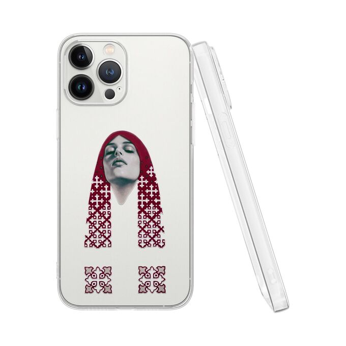 Силиконовый чехол Mcover для iPhone 13 Pro Max (Айфон 13 Про Макс), с принтом Девушка и русские мотивы