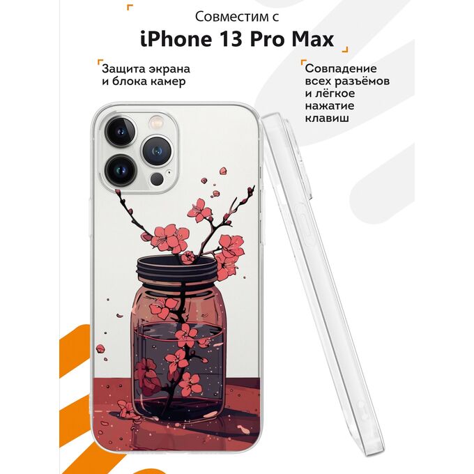 Силиконовый чехол Mcover для iPhone 13 Pro Max (Айфон 13 Про Макс), Сакура в стакане