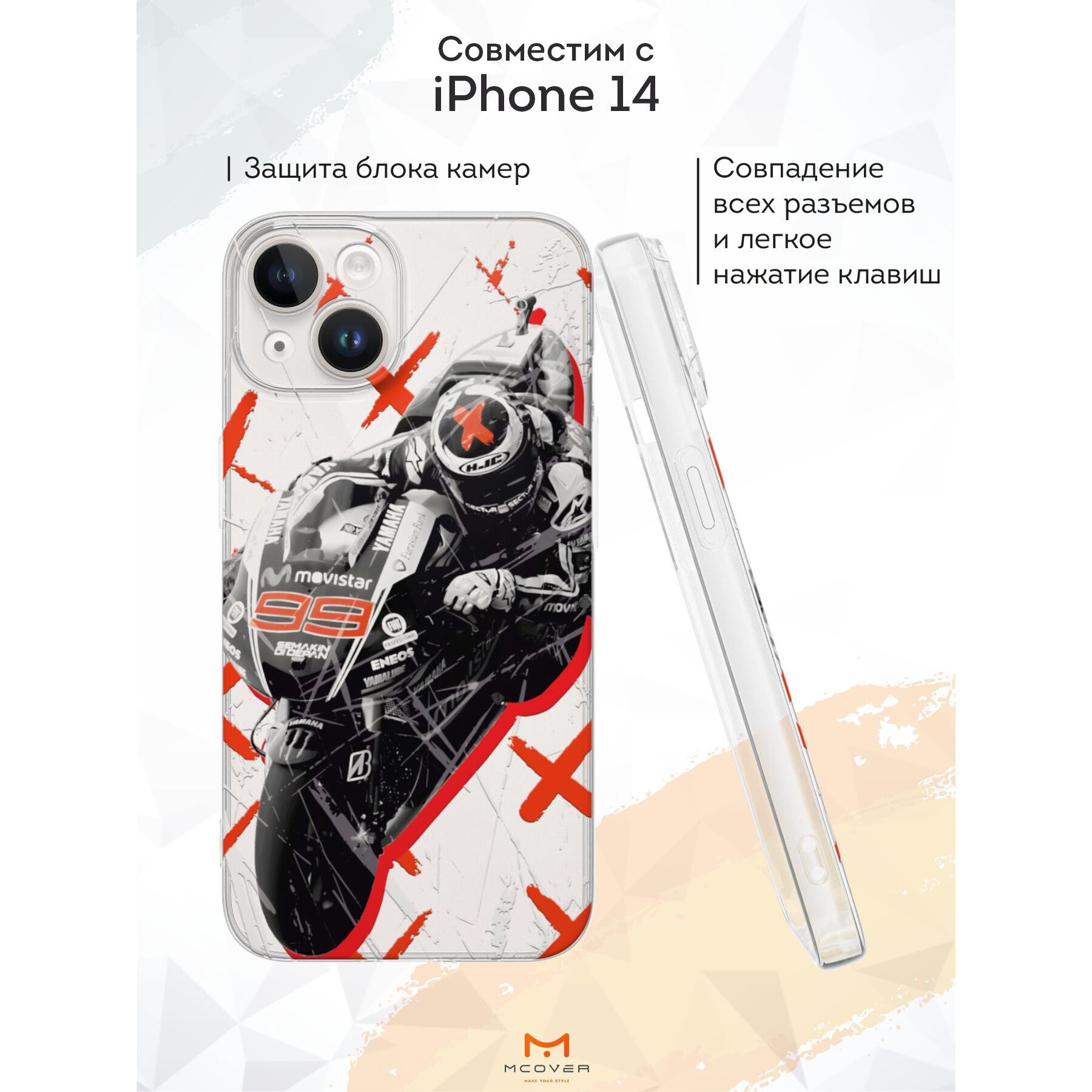 Силиконовый чехол Mcover для iPhone 14 (Айфон 14), Мотогонщик