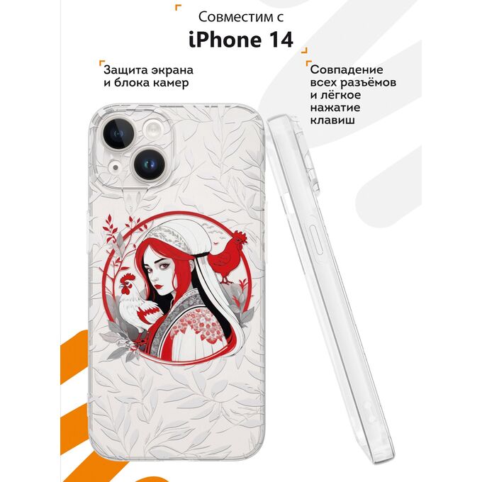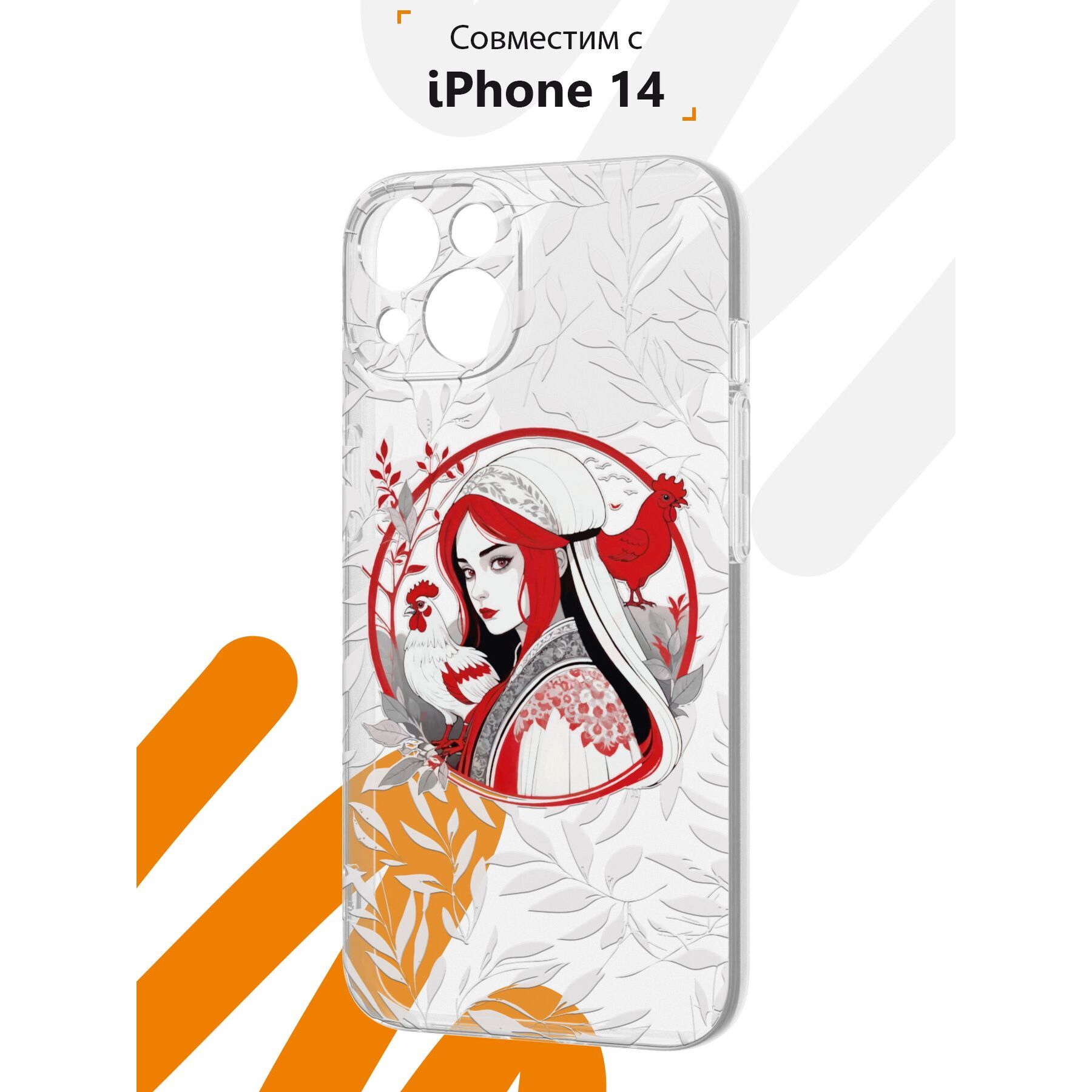 Силиконовый чехол Mcover для iPhone 14 (Айфон 14), с принтом Девушка и петухи