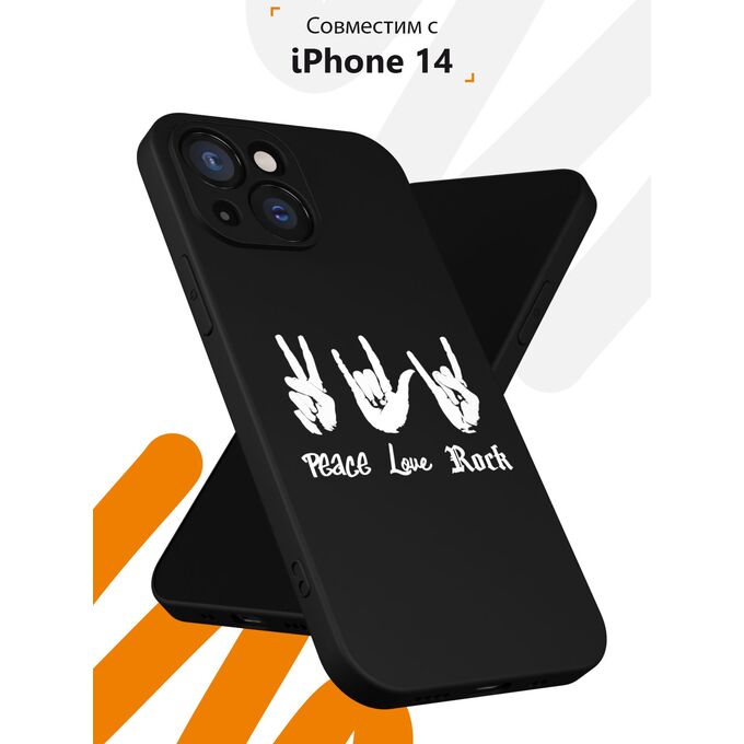 Силиконовый чехол Mcover для iPhone 14 (Айфон 14), с принтом Peace love rock