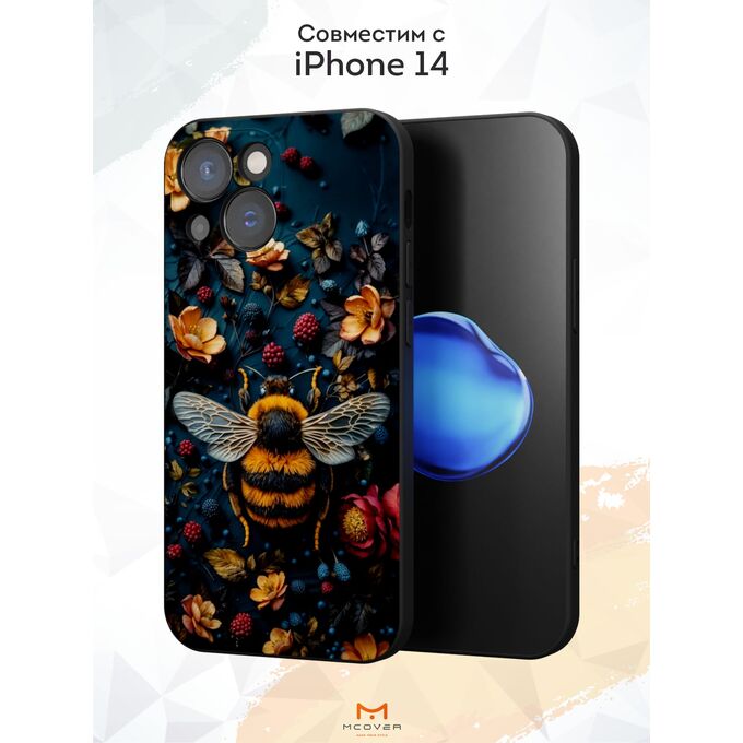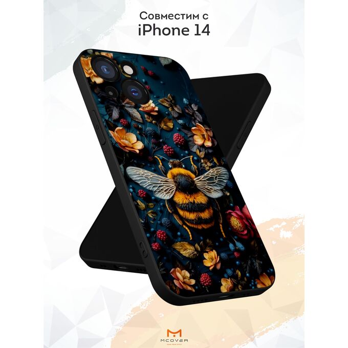 Силиконовый чехол Mcover для iPhone 14 (Айфон 14), с принтом Шмель в цветах