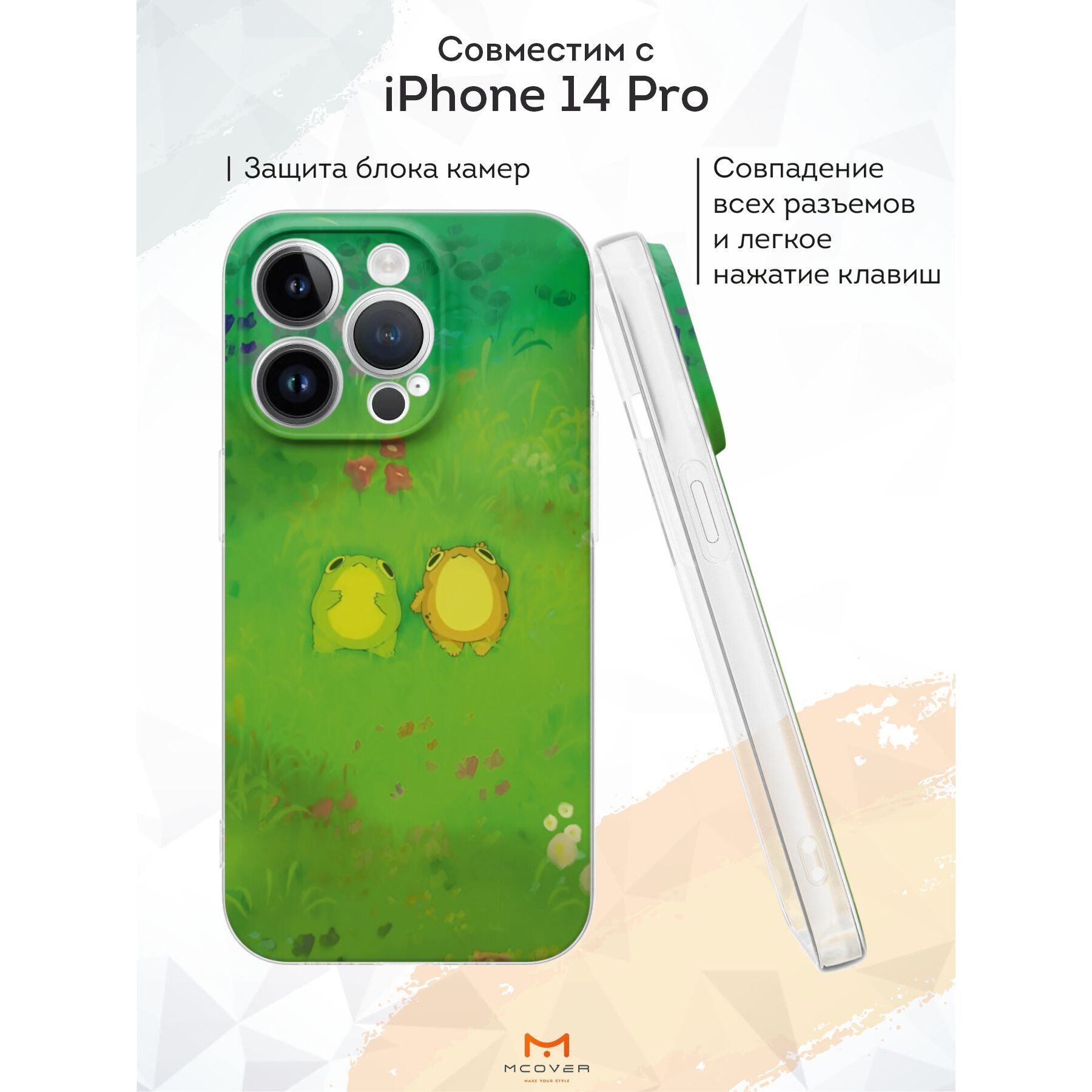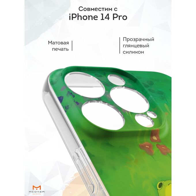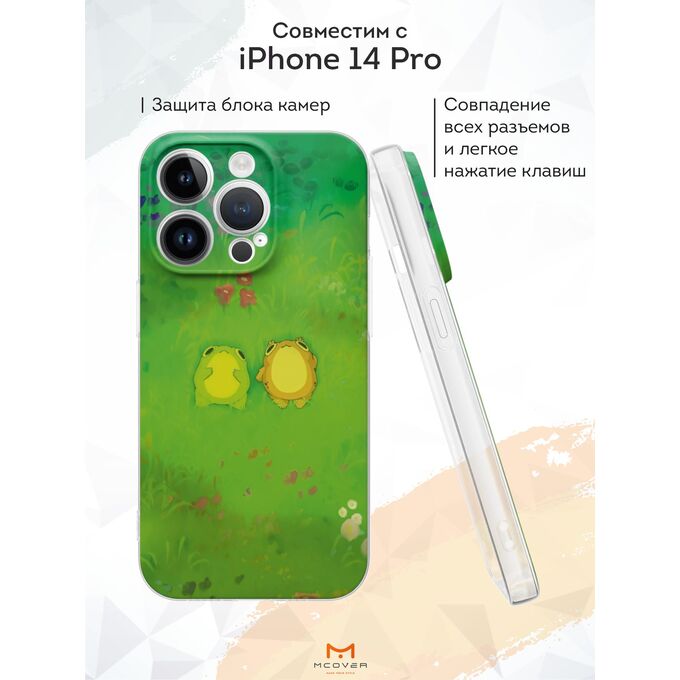 Силиконовый чехол Mcover для iPhone 14 Pro (Айфон 14 Про), с принтом Лягушки на траве