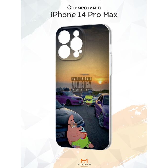 Силиконовый чехол Mcover для iPhone 14 Pro Max (Айфон 14 Про Макс), Патрик и машины