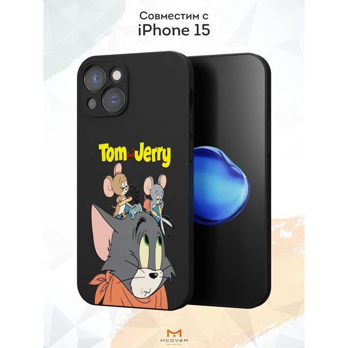 Силиконовый чехол Mcover для iPhone 15 (Айфон 15), Том и Джерри: стрижка