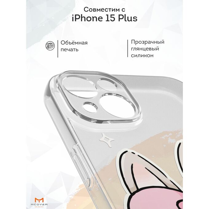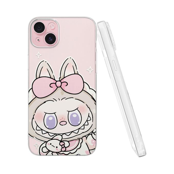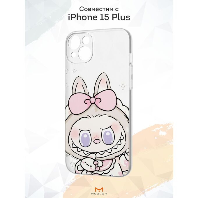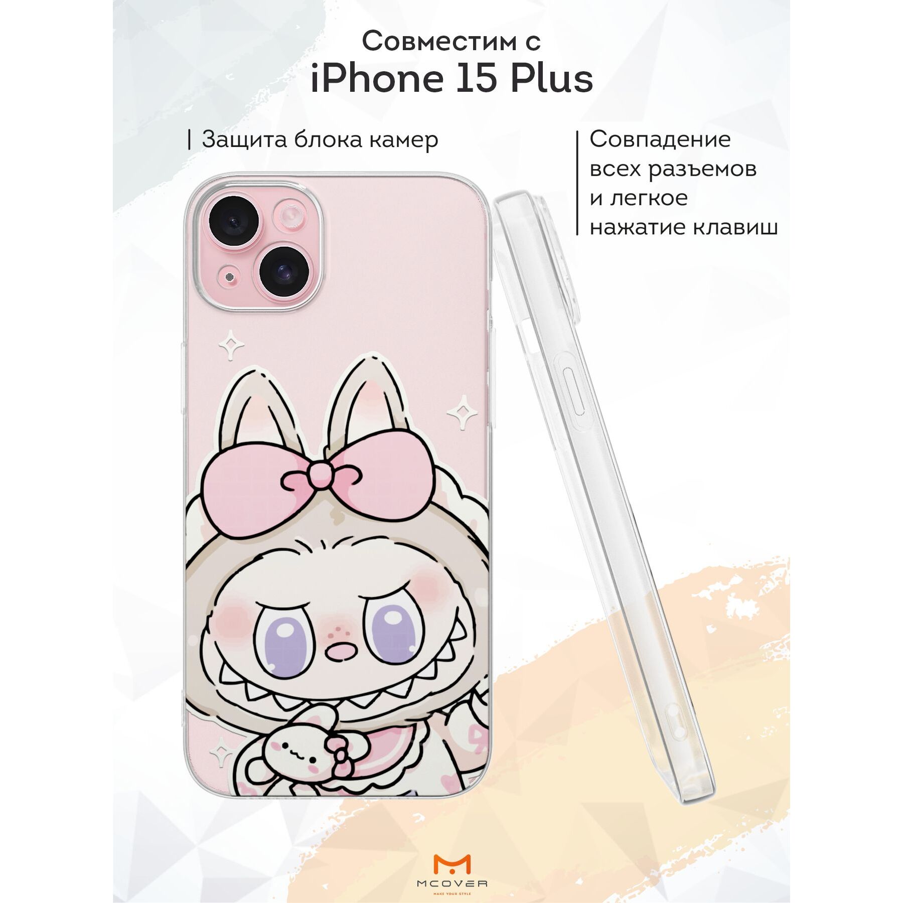 Силиконовый чехол Mcover для iPhone 15 Plus (Айфон 15 Плюс), с принтом Лабубу с бантиком