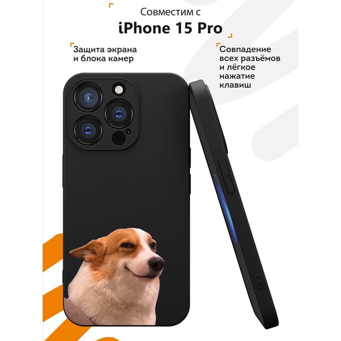 Силиконовый чехол Mcover для iPhone 15 Pro (Айфон 15 Про), с принтом Корги улыбается