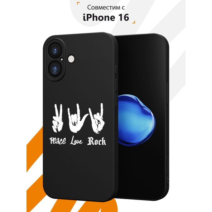Силиконовый чехол Mcover для iPhone 16 (Айфон 16), с принтом Peace love rock