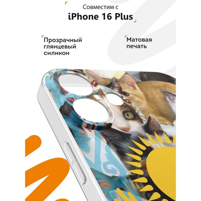 Силиконовый чехол Mcover для iPhone 16 Plus (Айфон 16 Плюс), Казахские котята