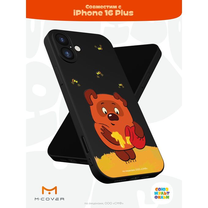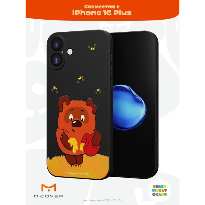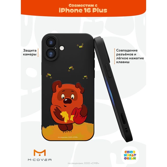 Силиконовый чехол Mcover для iPhone 16 Plus (Айфон 16 Плюс), Союзмультфильм, Винни-Пух, Медвежонок и мед