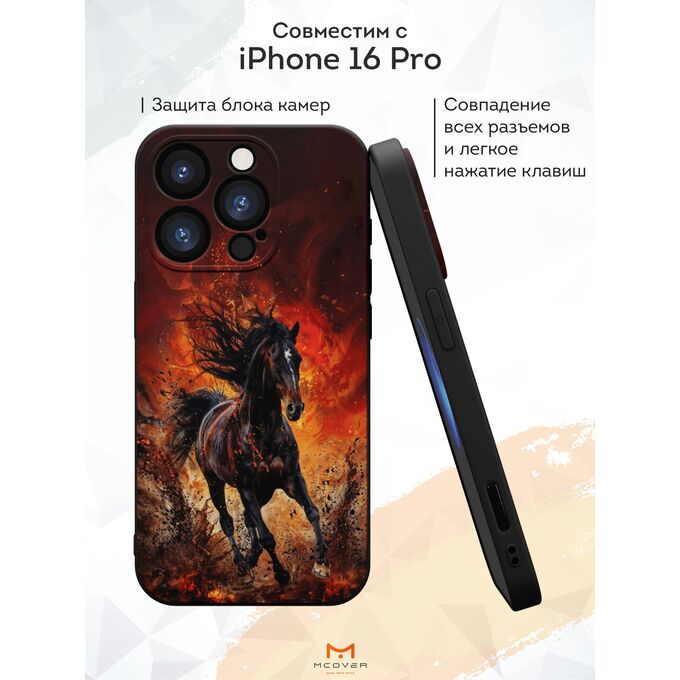 Силиконовый чехол Mcover для iPhone 16 Pro (Айфон 16 Про), Horse Art