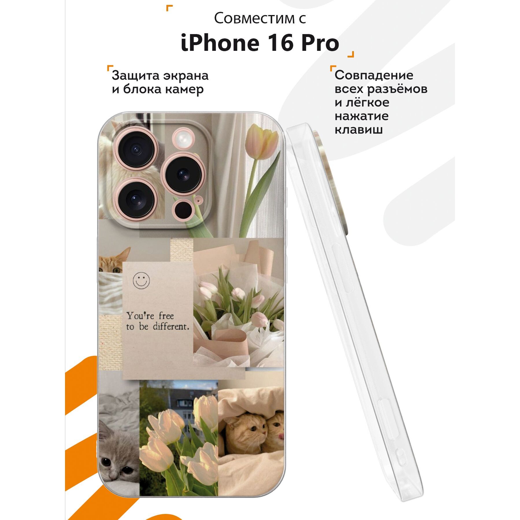 Силиконовый чехол Mcover для iPhone 16 Pro (Айфон 16 Про), Коллаж с тюльпанами