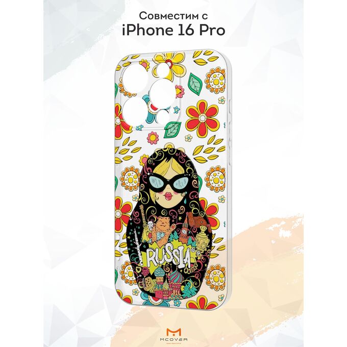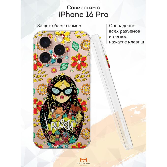 Силиконовый чехол Mcover для iPhone 16 Pro (Айфон 16 Про), с принтом Матрешка Russia