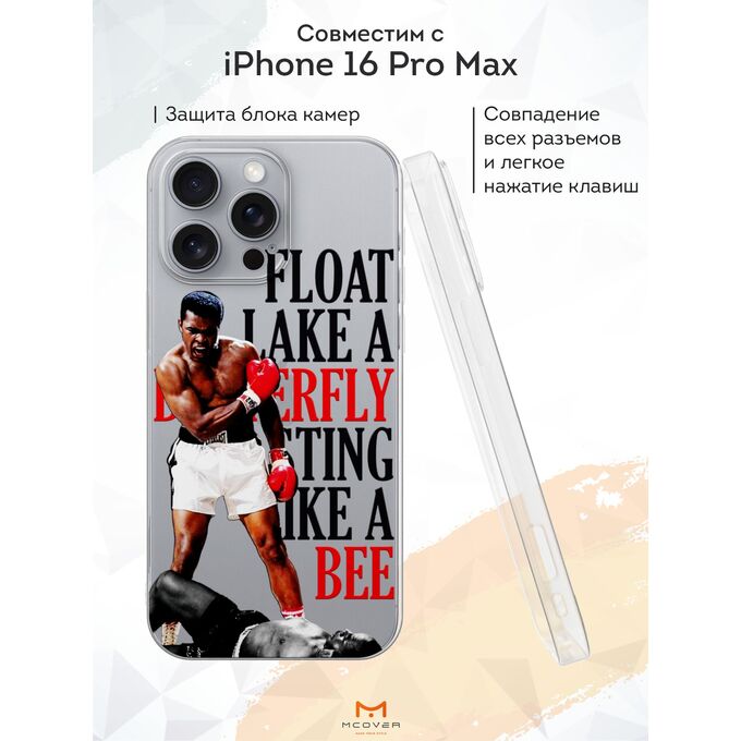 Силиконовый чехол Mcover для iPhone 16 Pro Max (Айфон 16 Про Макс), с принтом Float like a butterfly (1)