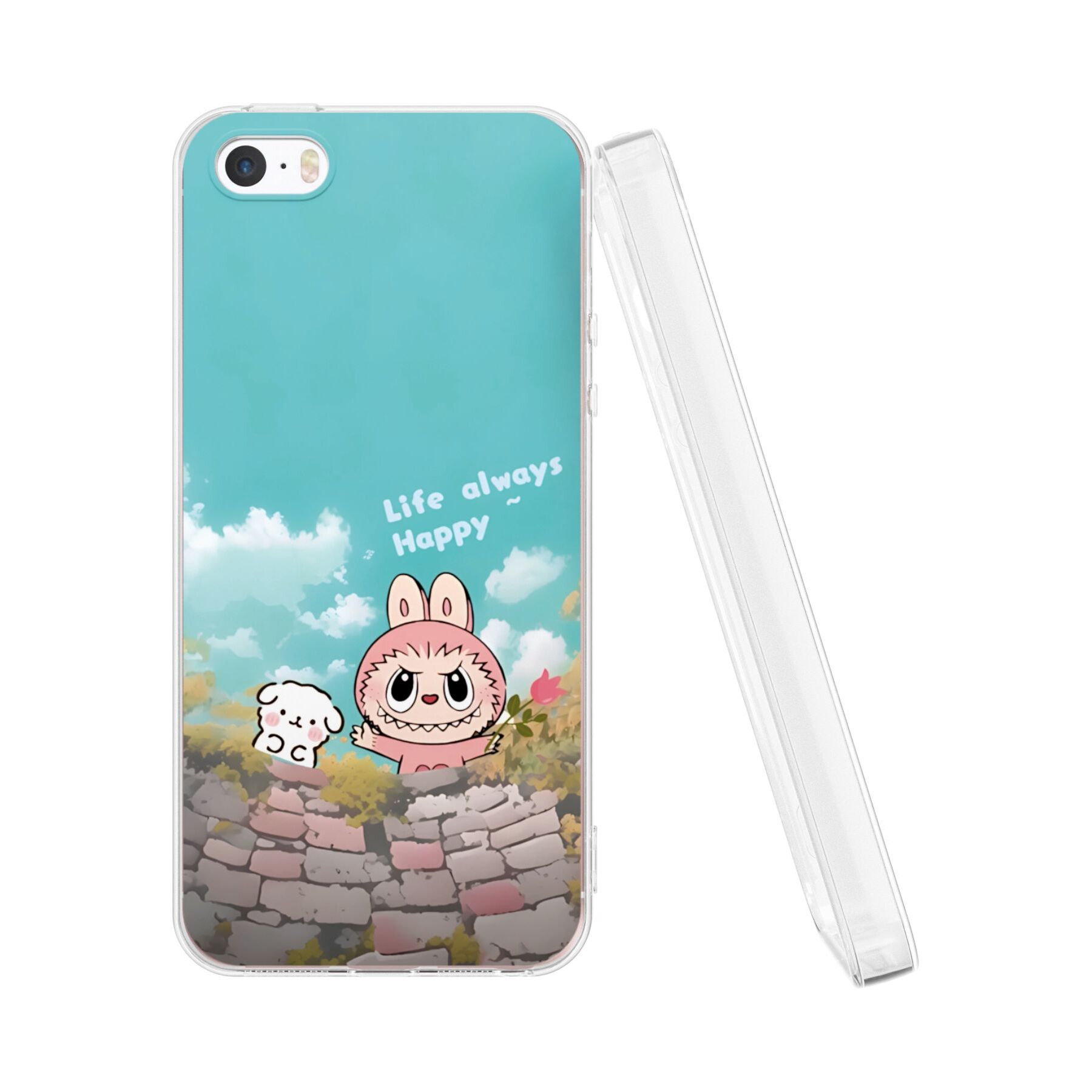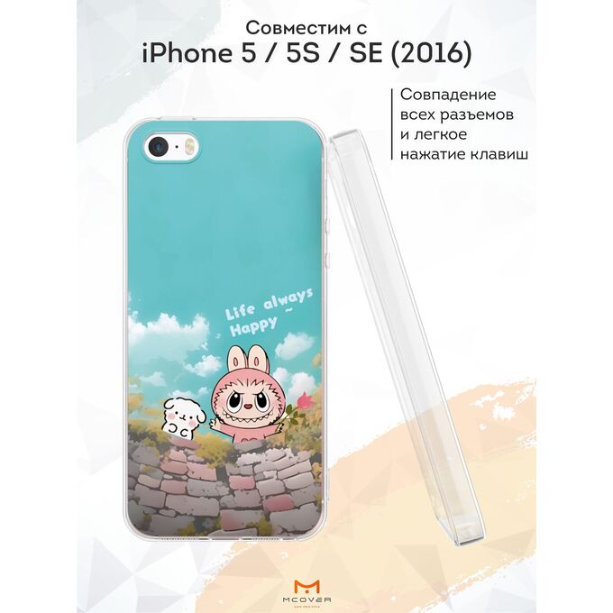 Силиконовый чехол Mcover для iPhone 5/5s/SE (Айфон 5, 5с и СЕ), с принтом Лабубу и щенок