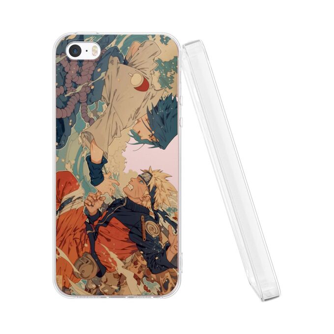 Силиконовый чехол Mcover для iPhone 5/5s/SE (Айфон 5, 5с и СЕ), Саске и Наруто. Схватка