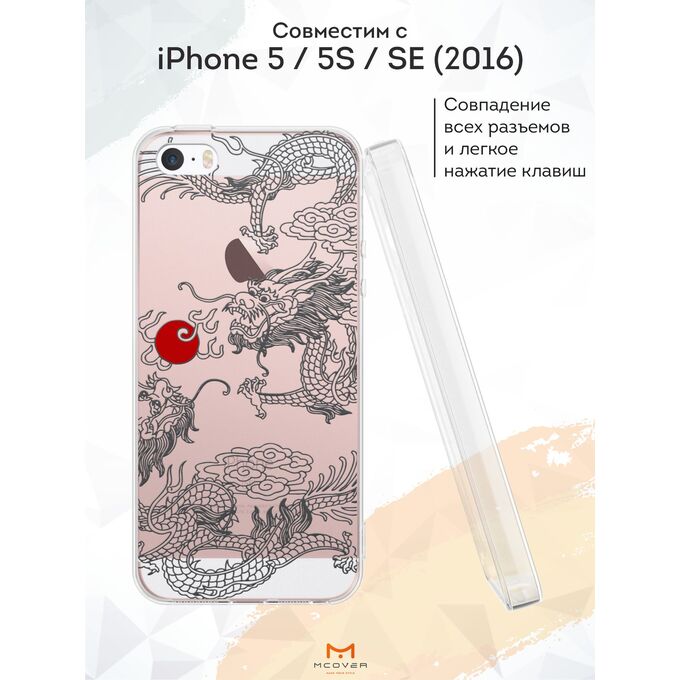 Силиконовый чехол Mcover для iPhone 5/5s/SE (Айфон 5, 5с и СЕ), Японский дракон инь, аниме