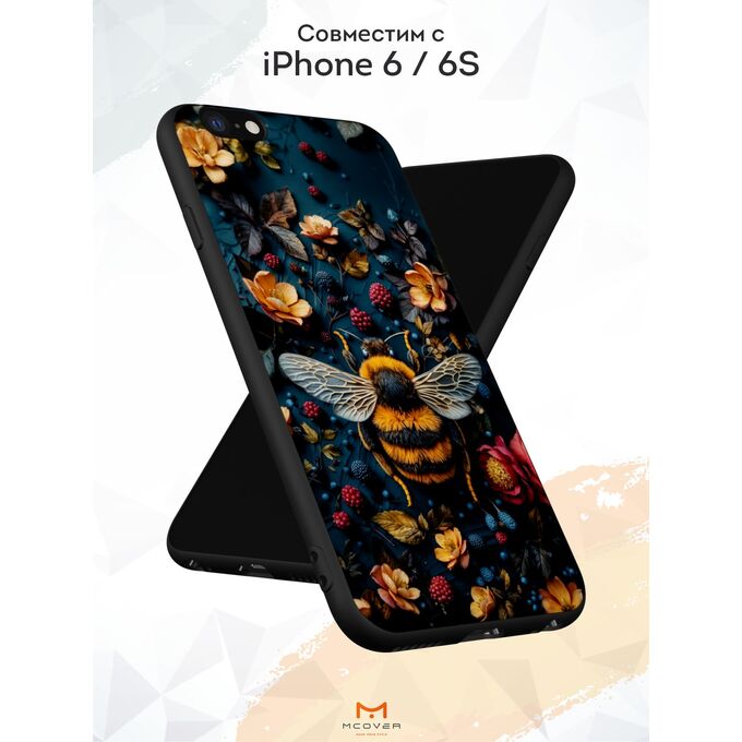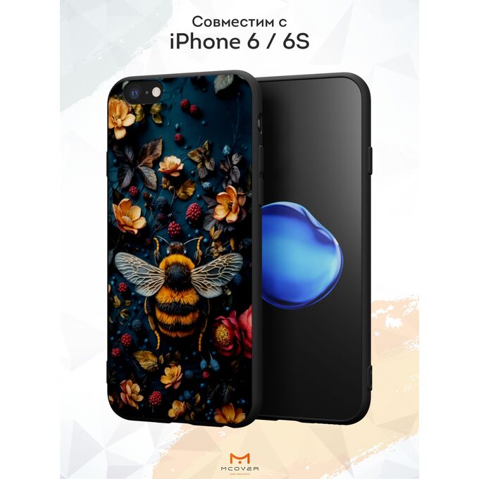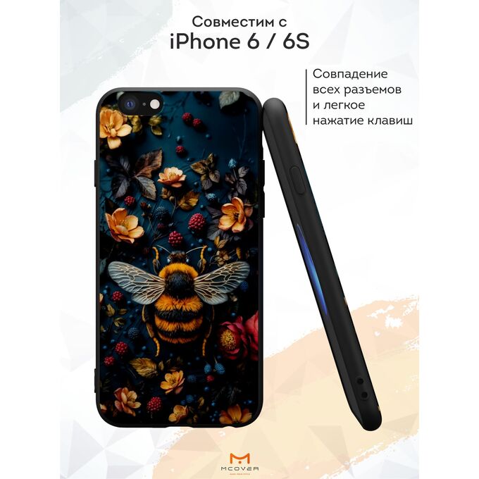 Силиконовый чехол Mcover для iPhone 6/6s (Айфон 6с), с принтом Шмель в цветах