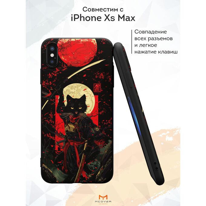 Силиконовый чехол Mcover для iPhone XS Max (Айфон Икс Эс Макс), Кот-самурай
