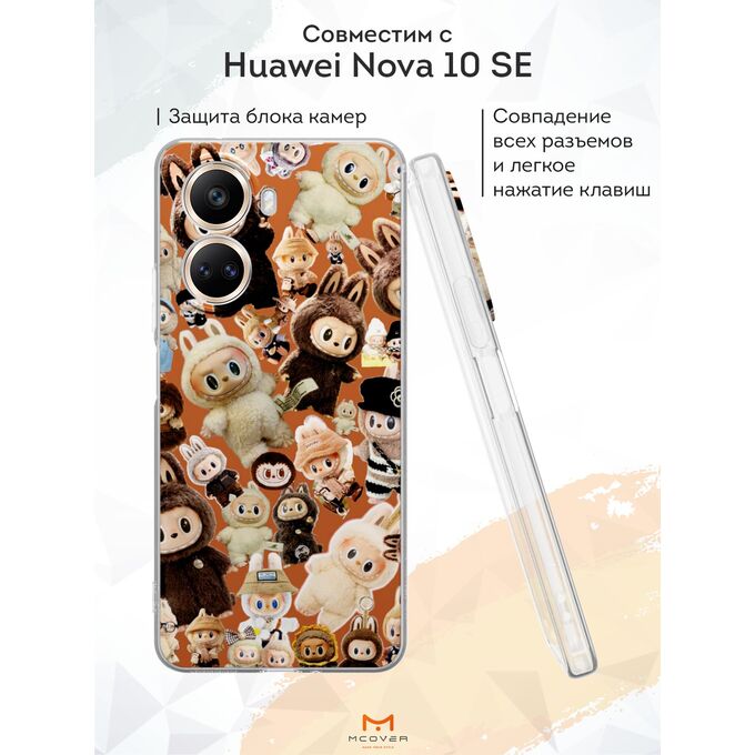 Силиконовый чехол Mcover для Nova 10 SE (Нова 10 СЕ), с принтом Бежевые лабубу