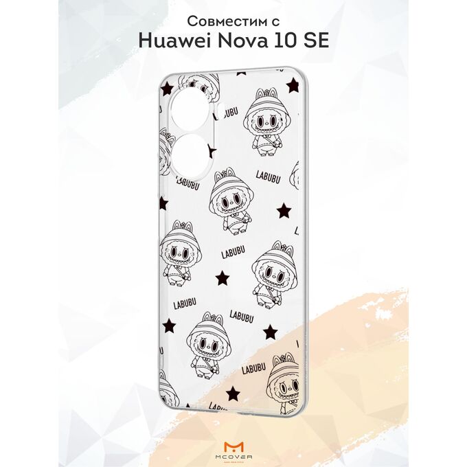 Силиконовый чехол Mcover для Nova 10 SE (Нова 10 СЕ), с принтом ЧБ лабубу