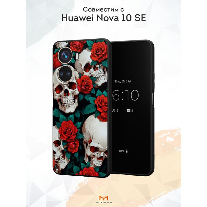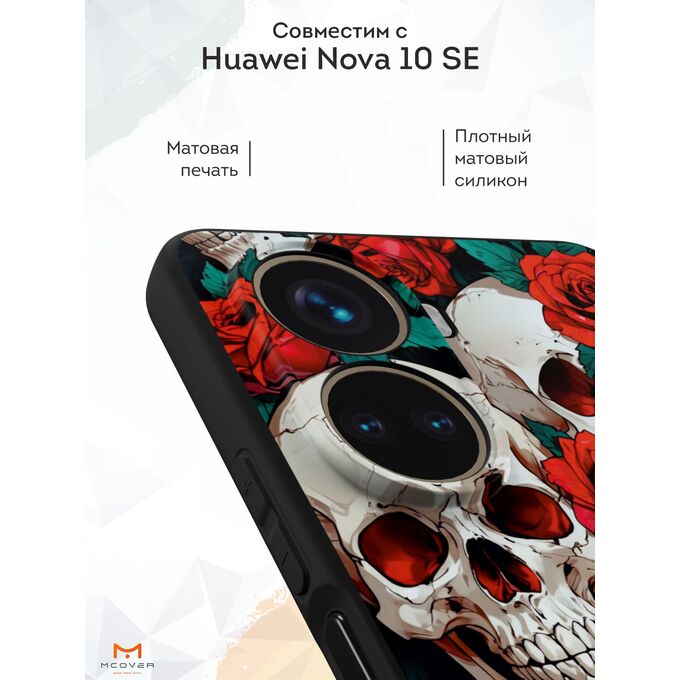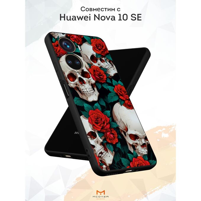 Силиконовый чехол Mcover для Nova 10 SE (Нова 10 СЕ), с принтом Черепа и розы