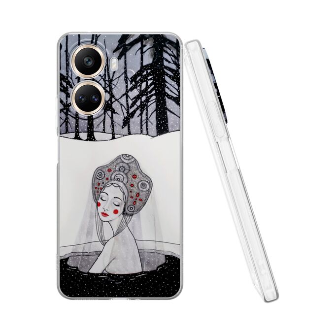 Силиконовый чехол Mcover для Nova 10 SE (Нова 10 СЕ), с принтом Девушка в кокошнике в лесу