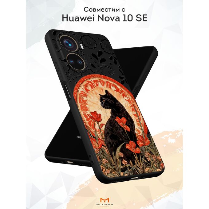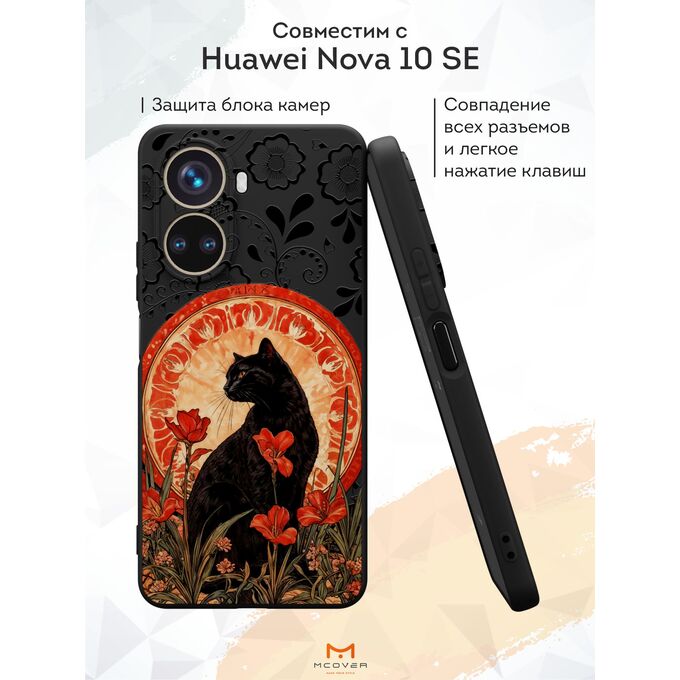 Силиконовый чехол Mcover для Nova 10 SE (Нова 10 СЕ), с принтом Кот в цветочном поле