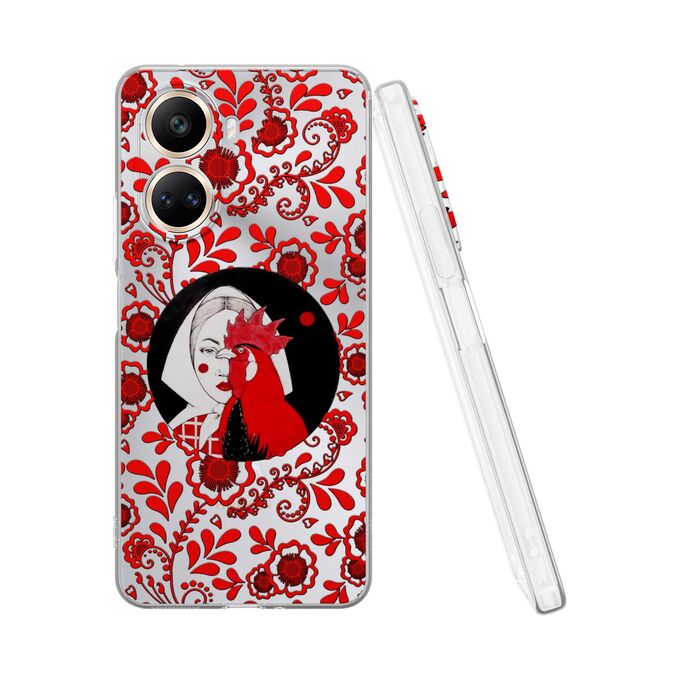 Силиконовый чехол Mcover для Nova 10 SE (Нова 10 СЕ), с принтом Красна девица и петух