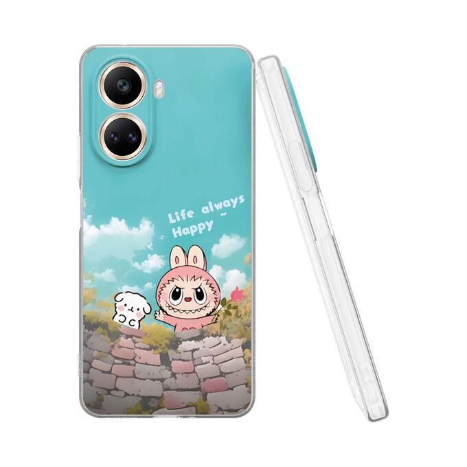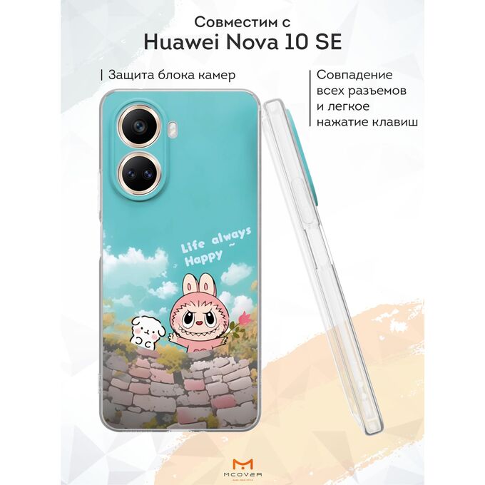 Силиконовый чехол Mcover для Nova 10 SE (Нова 10 СЕ), с принтом Лабубу и щенок