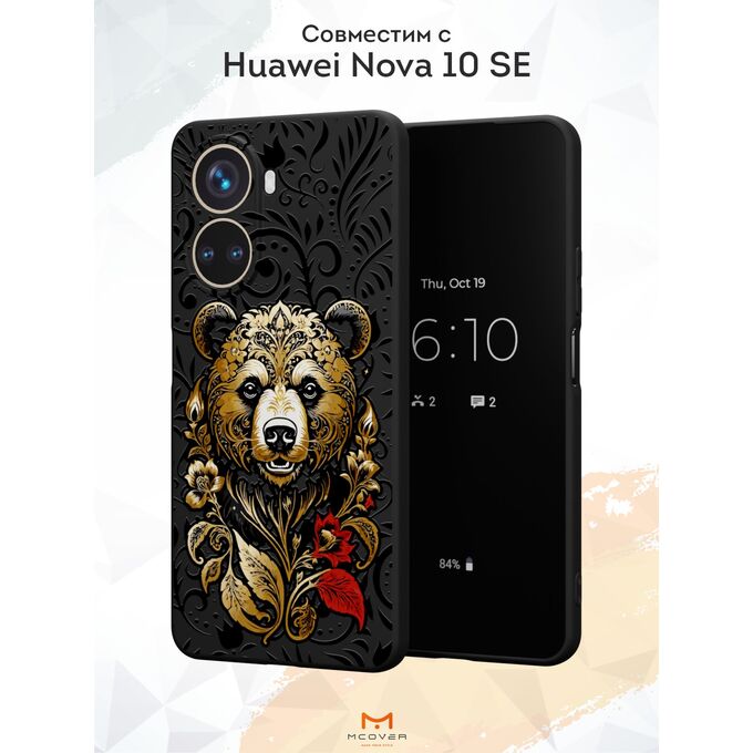 Силиконовый чехол Mcover для Nova 10 SE (Нова 10 СЕ), с принтом Медведь в русском стиле